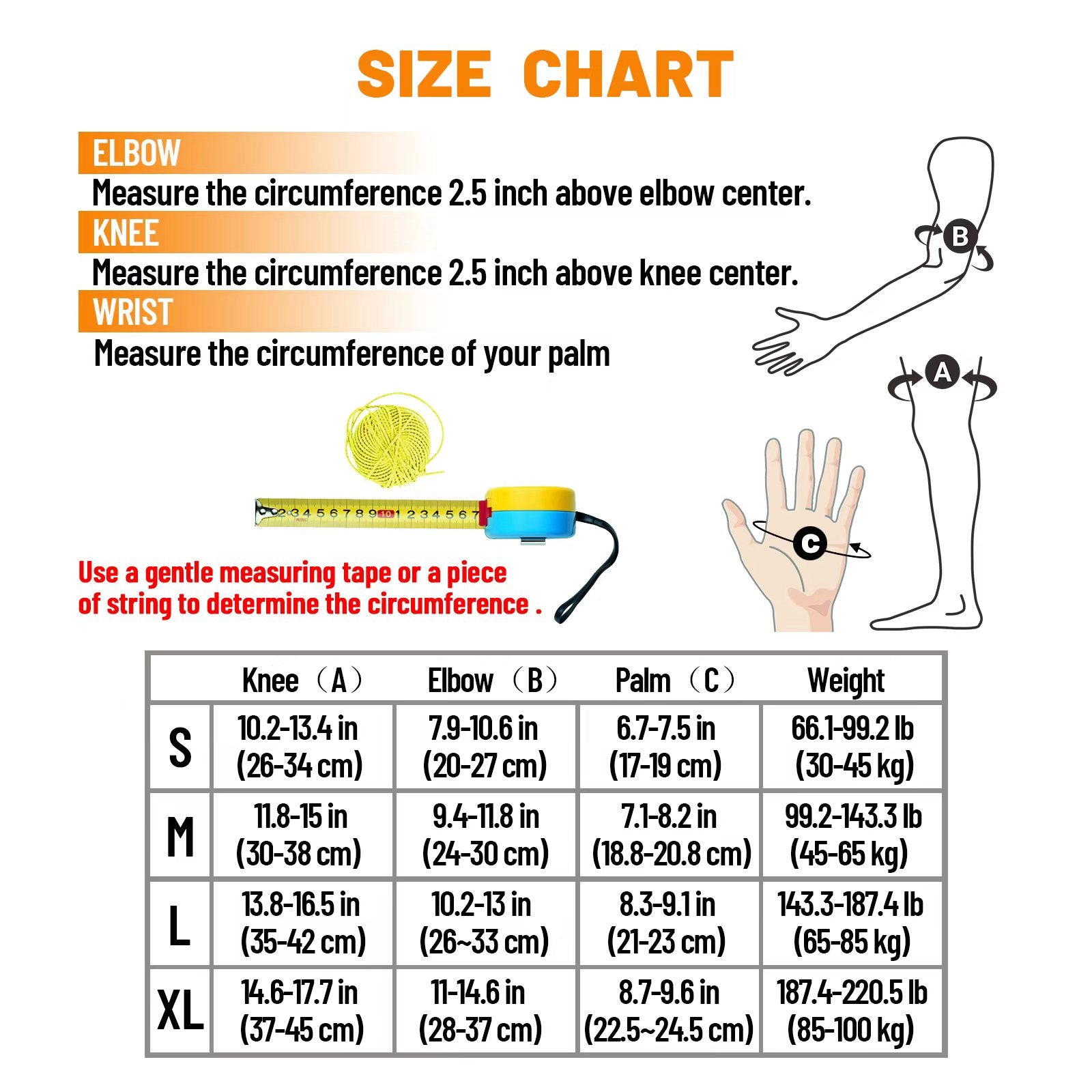Adjust the straps for a secure and comfortable fit before use. Ensure all pads are properly positioned to cover elbows, knees, and wrists. Perfect for everyday sports, offering lasting durability and maximum safety for outdoor adventures.
