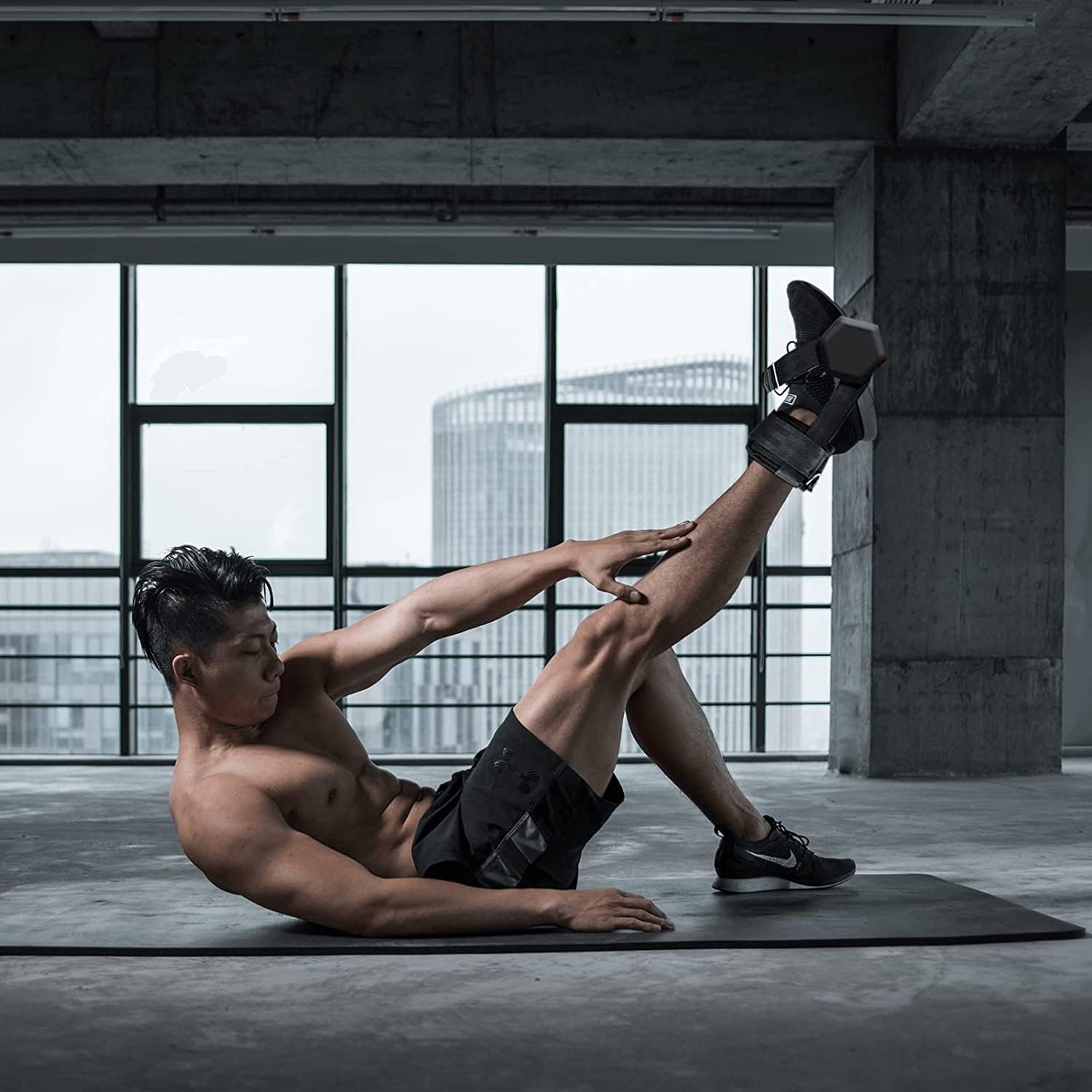 Wrap the ankle strap securely around your ankle and adjust for comfort. Attach a dumbbell to the strap and perform exercises such as leg extensions, hamstring curls, and side kicks. Gradually increase weight resistance for progressive strength training and improved results.