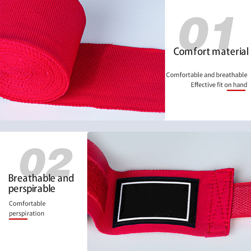 Wrap the bandages securely around your wrists and hands before training, ensuring full coverage of the knuckles and wrists. Adjust the tightness to your comfort level and secure using the thumb loop for a firm fit.