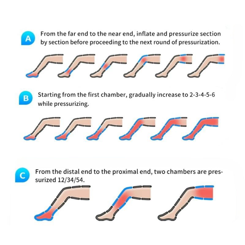 • Inflation & Deflation: The cuffs inflate and deflate rhythmically to improve blood flow, alleviate fatigue, and promote recovery after long hours of standing or sitting.