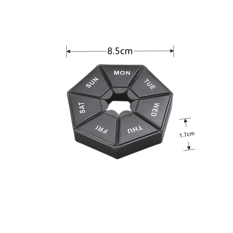 • Weekly Organizer: Includes seven compartments for daily pills, vitamins, or supplements, helping you plan your weekly dosage efficiently.