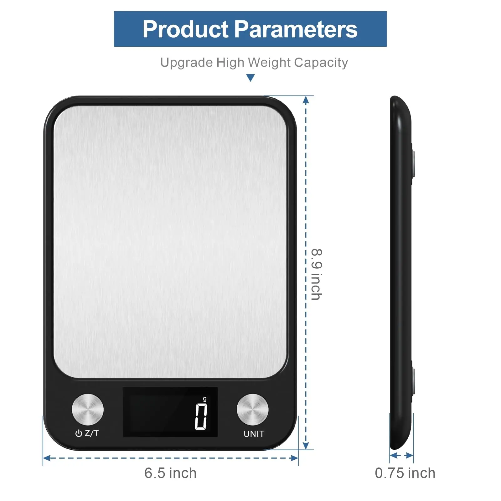 Premium Kitchen Scale 15Kg/1g – Stainless Steel Digital Food and Coffee Weighing Scale, LED Display, Battery-Powered, Multi-Unit Options for Cooking and Baking