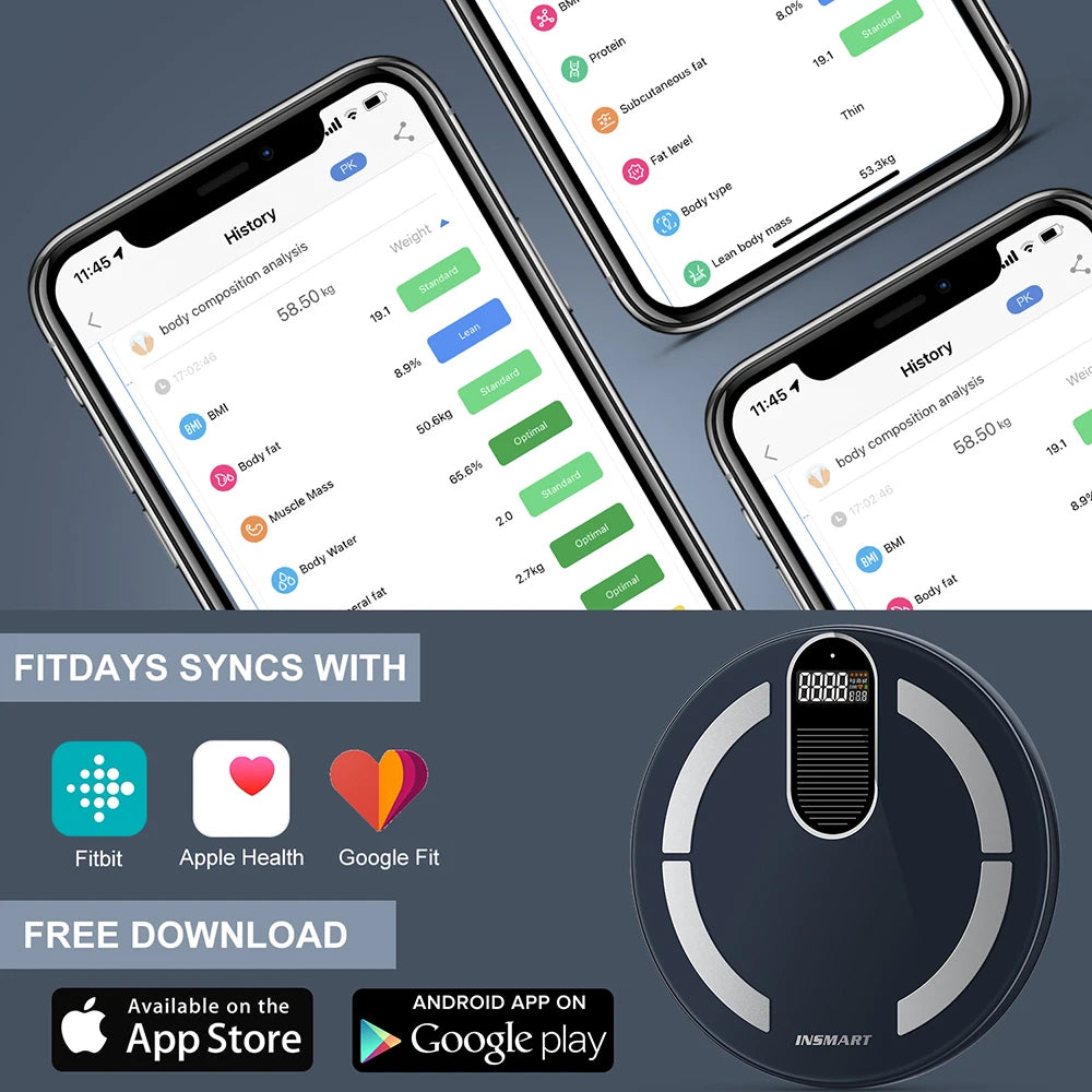 • App Integration: Syncs seamlessly with the INSMART Health app. Compatible with Apple Health, Fitbit, and Google Fit. Multi-user tracking ideal for families.