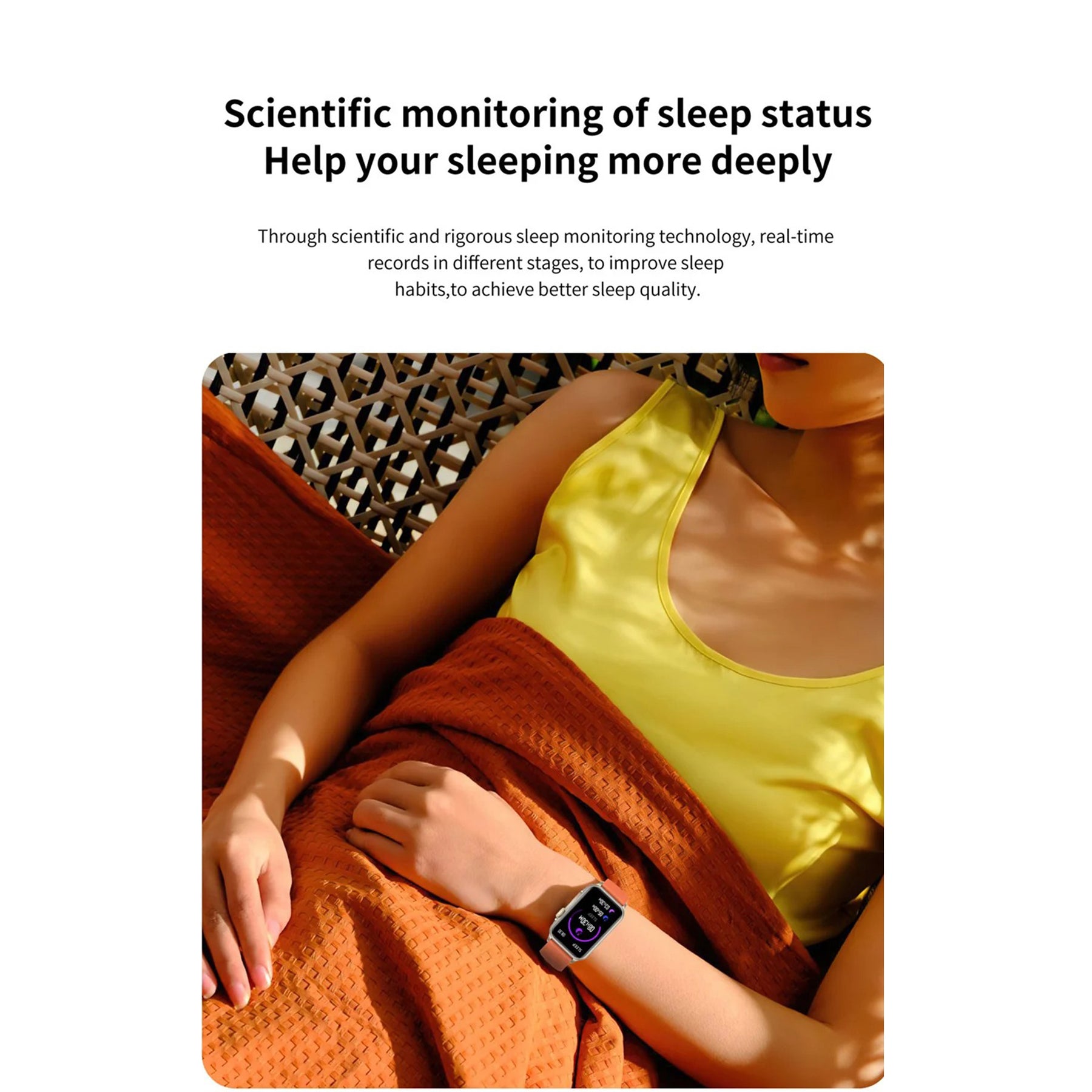 • Health Monitoring: Tracks blood pressure, real-time heart rate, and provides stress relief and sleep aid features to maintain wellness.