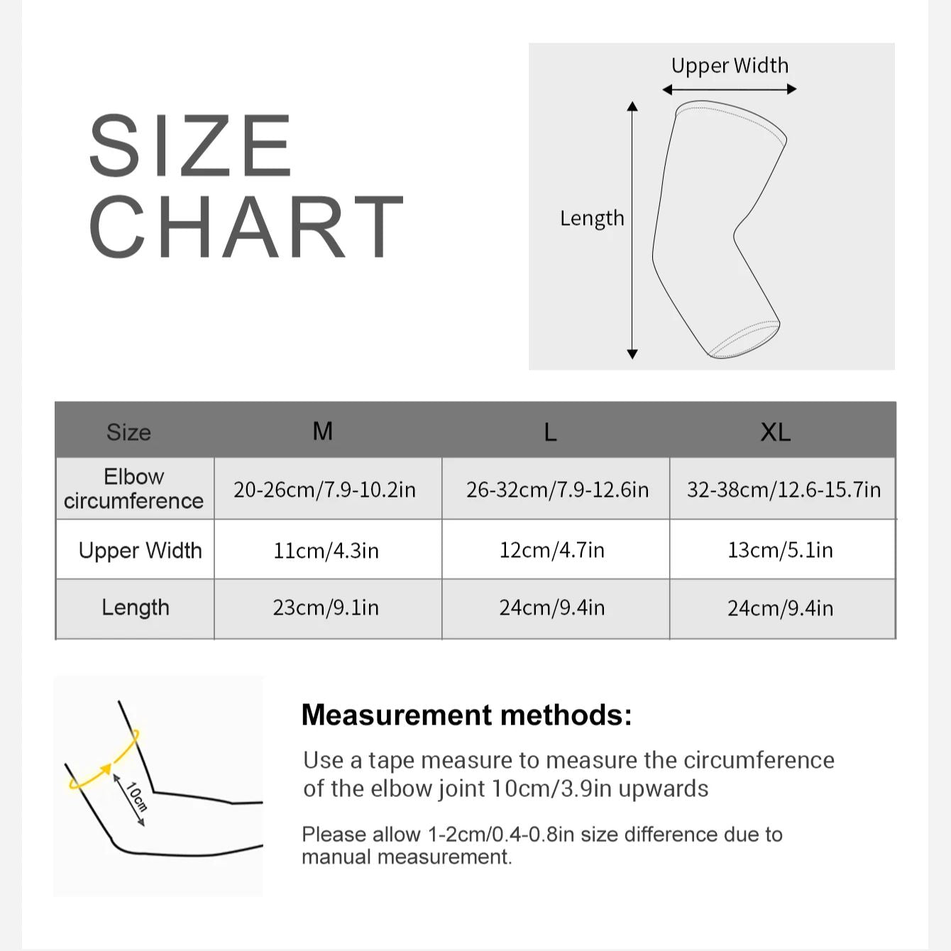 • Full Arm Coverage: Extends from the wrist to the upper arm, providing full protection and compression for the elbow and surrounding muscles.