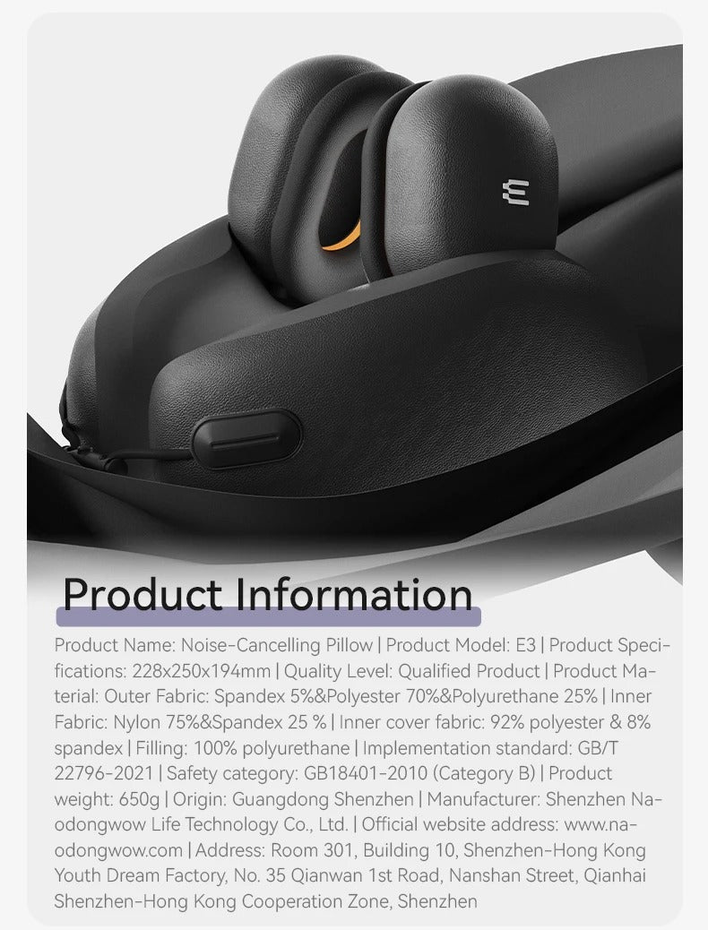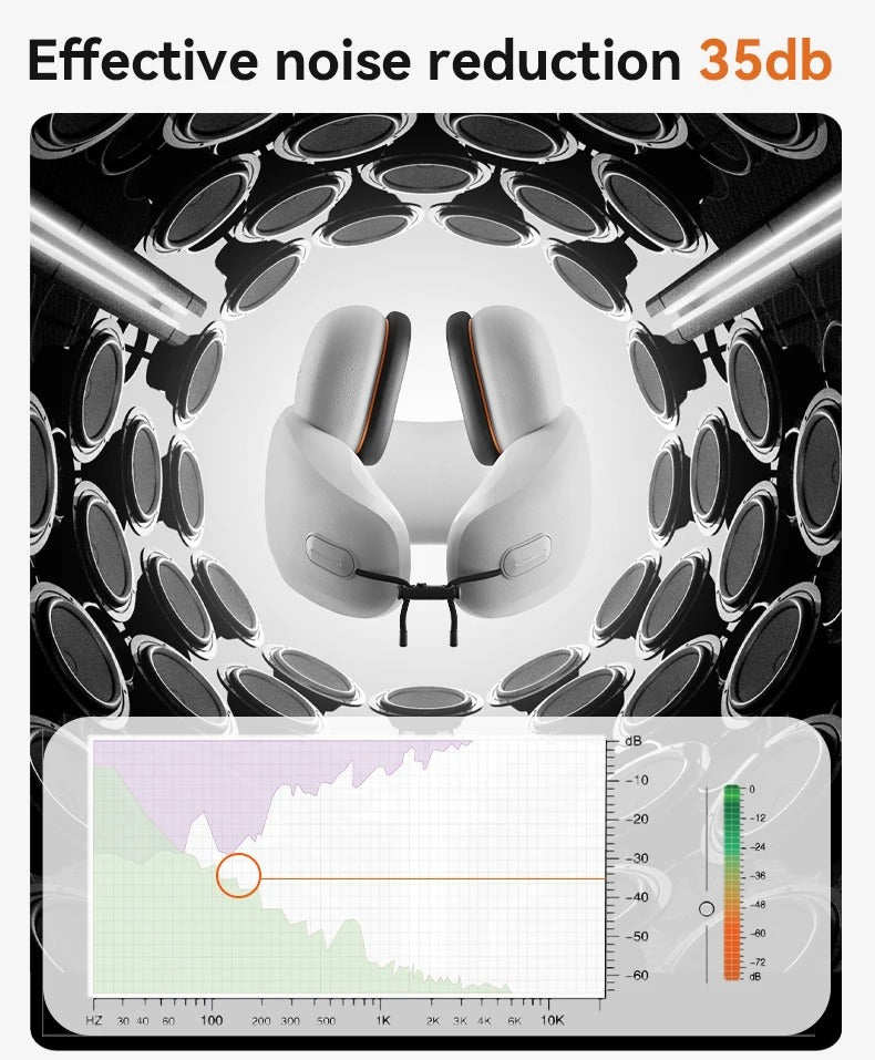 Noise Cancelling Technology: Patented design with seven-layer industrial-grade materials offering 35dB noise reduction for a peaceful, serene atmosphere—perfect for travel, napping, or relaxation.